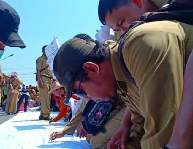 BLITAR – Dipicu regulasi rekruitmen calon pegawai negeri sipil (CPNS) 2018, yang dinilai tidak berkeadilan, 3.750 pegawai dari guru tidak tetap (GTT) dan pegawai tidak tetap (PTT) Kabupaten Blitar, menggelar mogok kerja. Rencananya, aksi mogok kerja yang akan mereka lakukan selama sepekan, yakni dari tanggal 24 sampai dengan 29 September mendatang.
