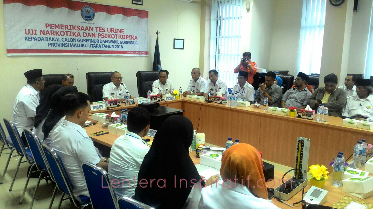 Hari ini Komisi Pemilihan Umum (KPU) Malut mengagendakan pemeriksaan bebas narkoba bagi 3 paslon Gubernur dan Wakil Gubernur Malut yang di laksanakan di gedung Badan Narkotika Nasional (BNNP) Malut di Kelurahan Kalumata, Kecamatan Ternate Selatan, Kota Ternate, Maluku Utara .rabu (10/1/2018) pukul: 14.30 wit