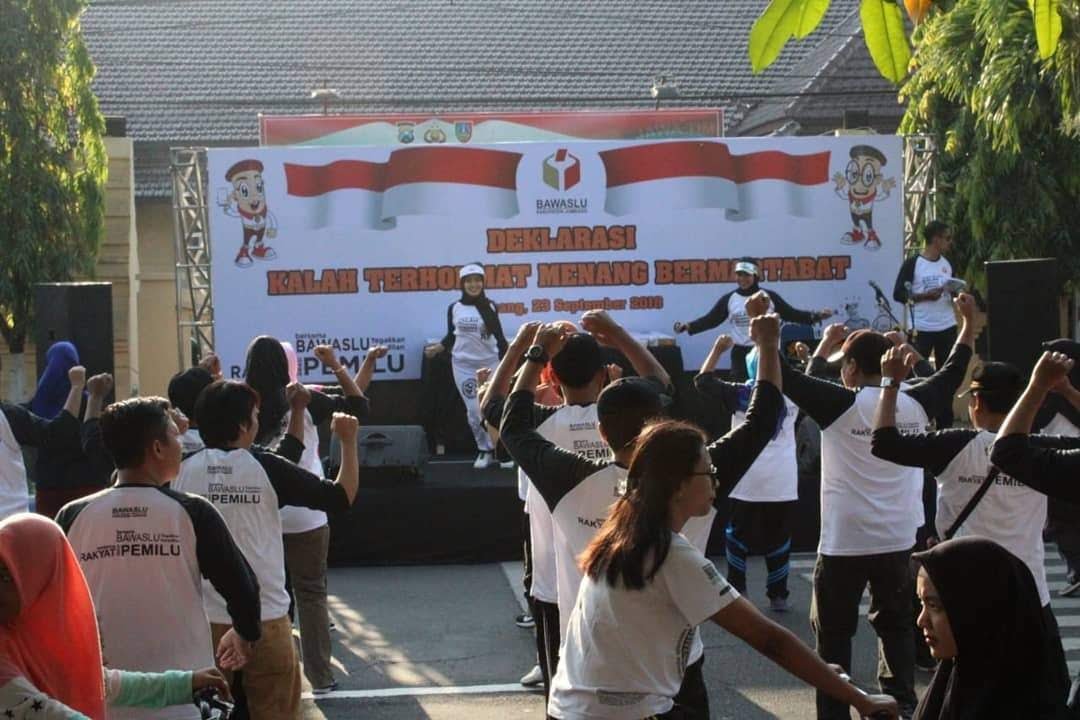 Acara ” deklarasi kalah terhormat menang bermartabat ” ini diawali degan melakukan senam bersama yg diberi nama ” Senam Awas “.pada acara tersebut dihadiri ketua Bawaslu kabupaten jombang, Ahmad udi masjkur, kabag ops kapolres jombang kompol chusen hidayat dan kepala badan kesatuan bangsa dan politik kabupaten jombang mas’ ud. hadir juga perwakilan partai politik peserta pemilu dan anggota panwascam dari 21 kecamatan se- kabupaten jombang. (Ton).