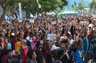 Ribuan massa yang datang dari berbagai kecamatan di Kabupaten Halmahera Selatan (Halsel), Provinsi  Maluku Utara, tumpah ruah di Lapangan Mandaong Pantai, Kecamatan Bacan Selatan, pada Sabtu (22/6/2018).