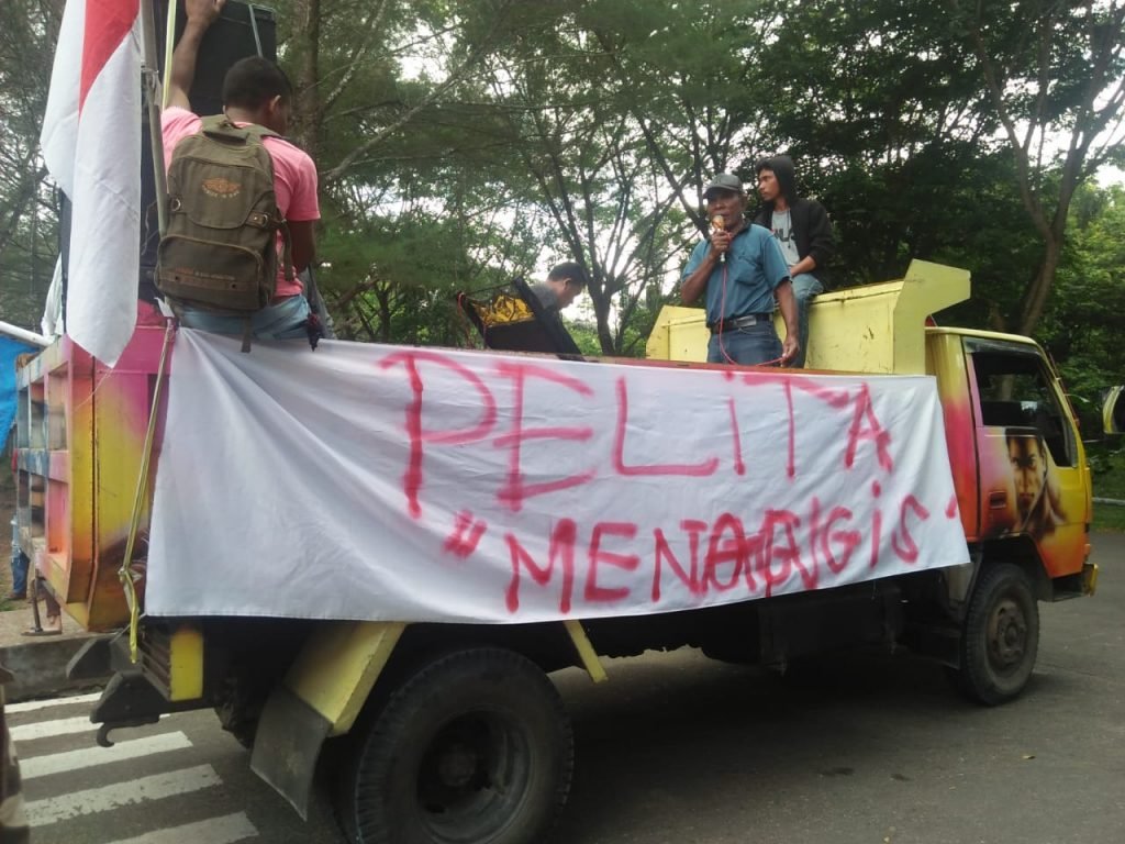 Dalam aksinya massa menilai adanya dugaan korupsi yang semakin merajalela mulai dari tingkat desa sampai ke tingkat kota. Dalam orasinya itu massa juga menyampaikan adanya penindasan dan ketidakadilan yang mulai marajalela di tingkat pedesaan yaang salah satunya diduga telah dilakukan oleh Kepala Desa (Kades) Pelita, Sabrun Usman.