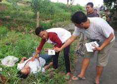 Selanjutnya, sampai dekat jembatan, kondisi jalan menurun. Korban sebagai pengemudi langsung menabrak buk jembatan tersebut hingga terpelanting jatuh ke bawah dekat parit, sehingga tubuhnya penuh luka.