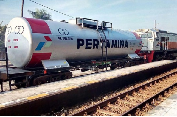 Foto : gerbong kereta pertamina yang berada di stasiun mojokerto.