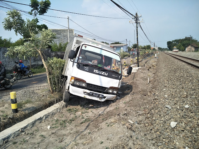 foto : truk box yang tabrak pagar pt.kai