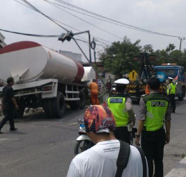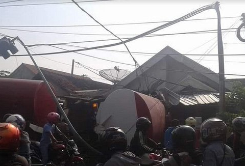 Berawal dari truk tangki melaju debgan kecepatan sedang dari arah selatan lalu secara mendadak truk oleng dan menabrak rumah warga.