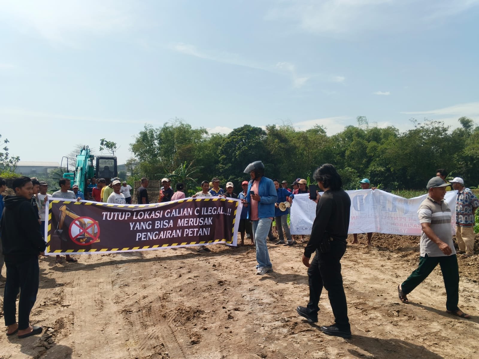 “Petani langsung berkumpul menolak karena khawatir irigasi rusak. Tapi pengusaha tetap menggali tanpa pemberitahuan kepada petani maupun pihak desa,” katanya.