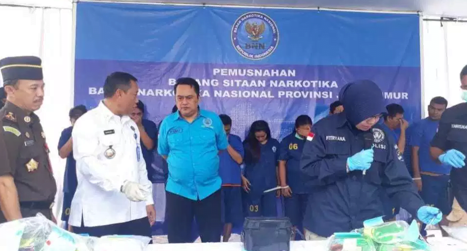 Pemusnahan barang bukti ini adalah hasil ungkap kasus penyalahgunaan narkoba oleh BNNP Jatim karena narkoba jenis sabu rawan untuk disalahgunakan. (fi)