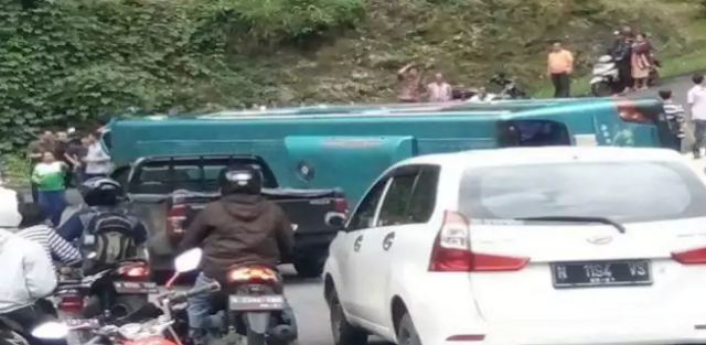 Bus terguling tak terkendali