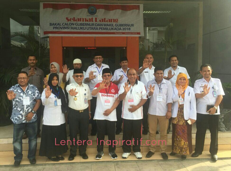 pasangan bakal calon Gubernur dan wakil Gubernur provinsi Maluku Utara yang telah selesai melakukan pemeriksaan tes urine uji narkotika dan psikotropika di kantor Badan Narkotika Nasional Provinsi (BNNP) Maluku Utara yang berada di Kelurahan Kalumata, Kecamatan Ternate Selatan, Kota Ternate, Maluku Utara. Kamis (11/01/2018)