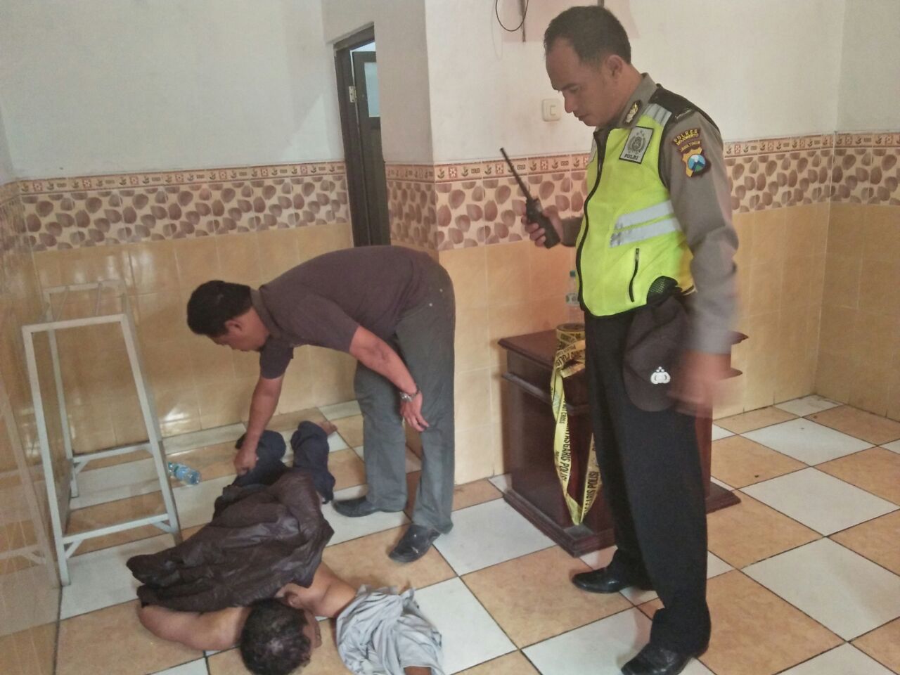 setelah mendapatkan laporan dari petugas hotel selang beberapa menit pihak kepolisian datang ke tempat kejadian perkara (TKP), untuk melakukan olah TKP, meminta VER, mencatat saksi saksi. dan dalam kejadian tersebut petugas juga berhasil mengamankan barang bukti berupa Vit C (merk Xon C), kondom merk Sutra, tissu magig, dan roti.
