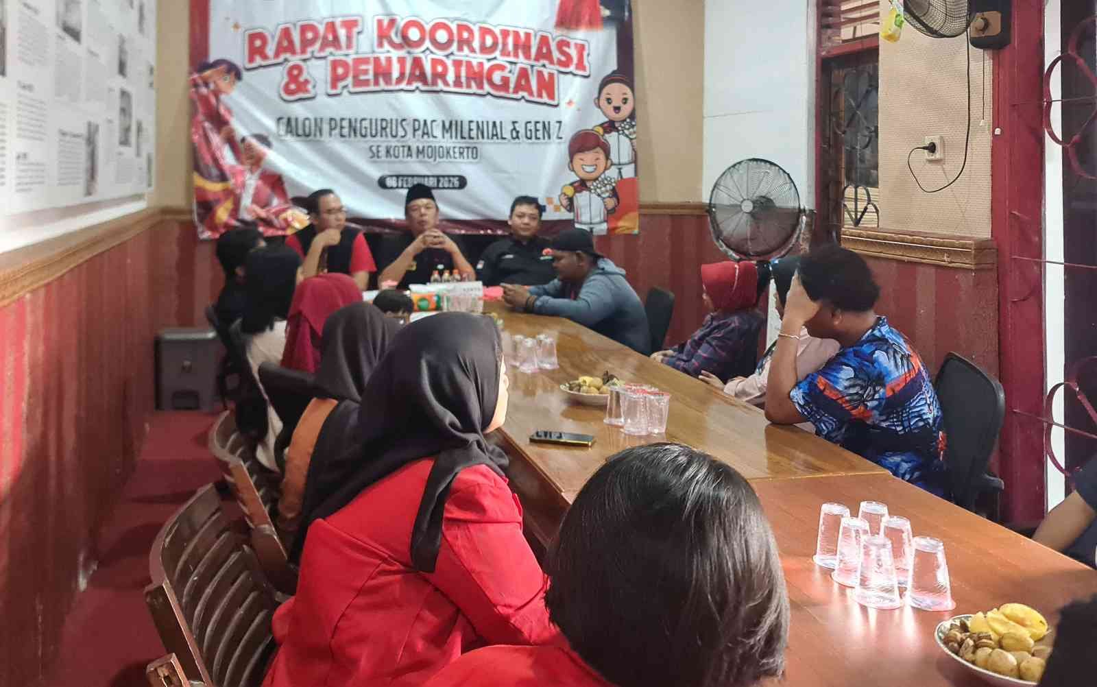 Kota Mojokerto,LenteraInspiratif.id – Dewan Pimpinan Cabang (DPC) PDI Perjuangan Kota Mojokerto menggelar rapat koordinasi sekaligus penjaringan calon pengurus Pimpinan Anak Cabang (PAC) dari kalangan Milenial dan Generasi Z se-Kota Mojokerto. Kegiatan ini berlangsung pada Minggu (8/2/2026) di Kantor Sekretariat DPC PDI Perjuangan Kota Mojokerto dan diikuti oleh peserta dari seluruh kecamatan.