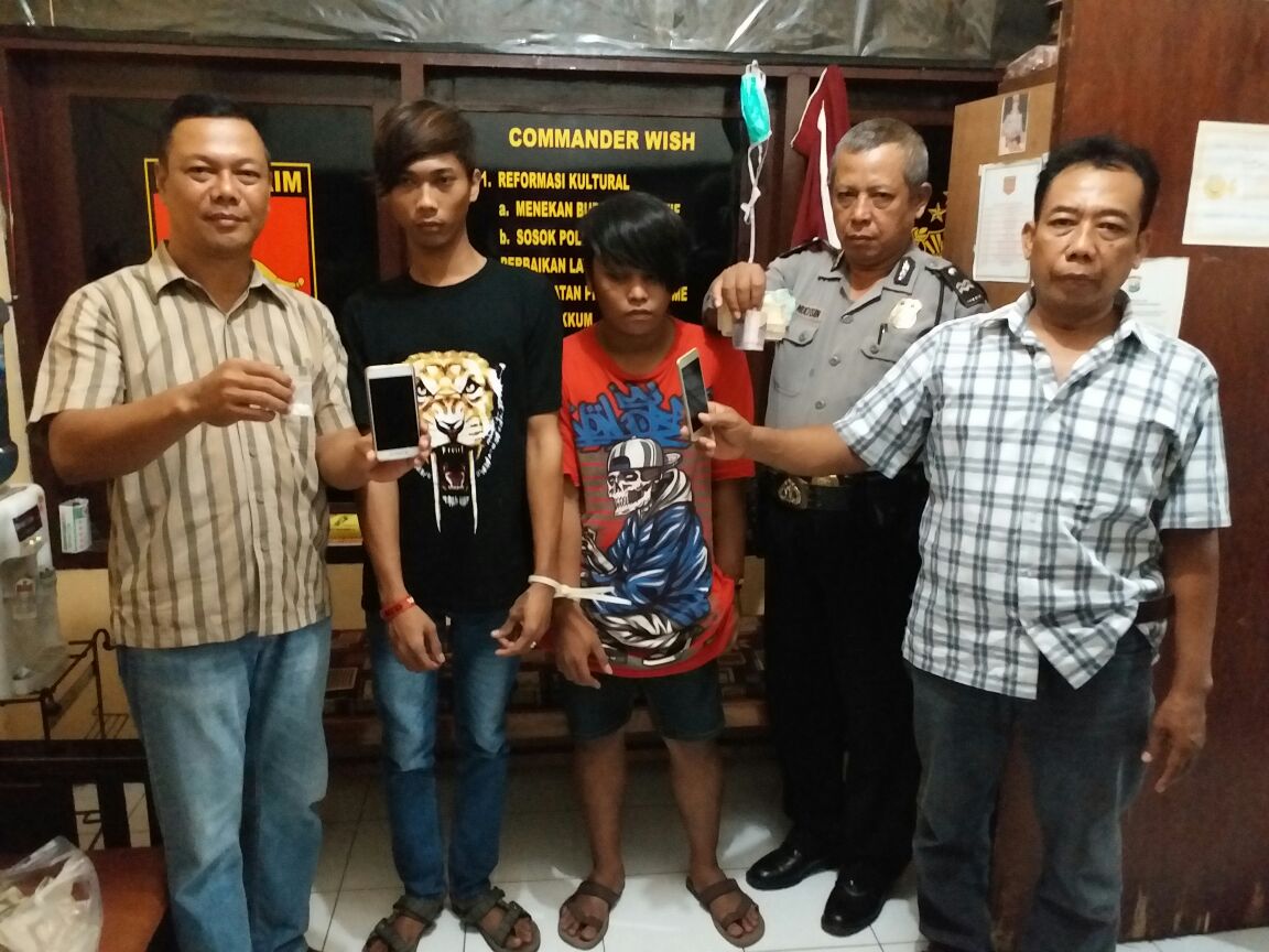 foto : petugas saat menunjukkan pelaku dan barang bukti