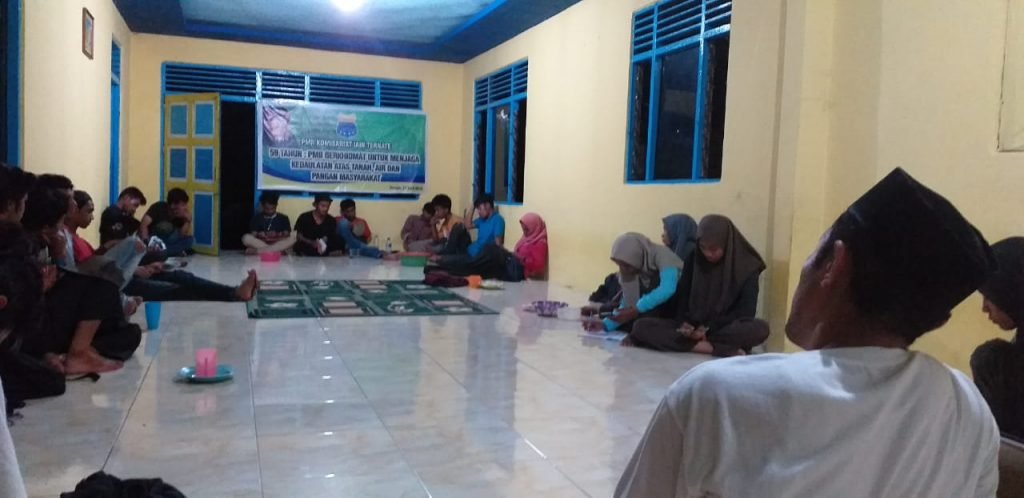 Diskusi yang bertajuk ’59 tahun PMII berkhidmat untuk menjaga kedaulatan atas tanah air dan pangan masyarakat’ tersebut dilaksanakan di sekretariat PMII Cabang Ternate, jln makam pahlawan, kelurahan sangaji, KecamatanTernate Utara, Kota Ternate, Maluku Utara.