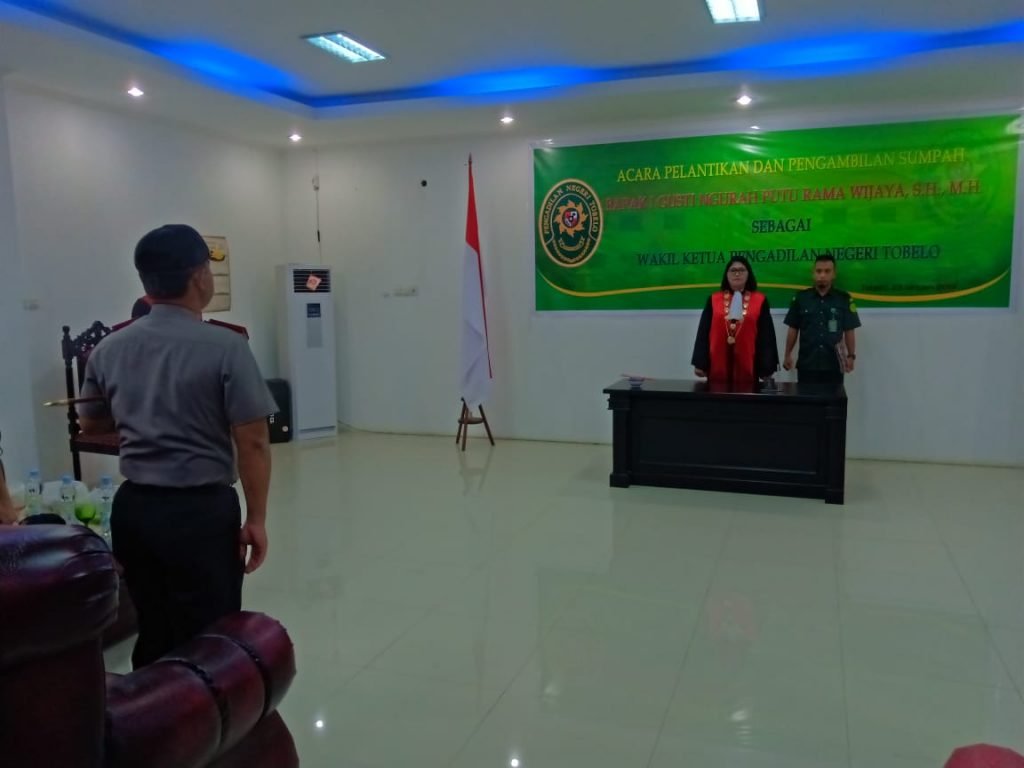HALUT – Bertempat di ruang rapat umum Pengadilan Negeri (PN) Tobelo, Kabupaten Halmahera Utara (Halut), Rabu (23/1/2019), diselenggarakan pengambilan sumpah pada Gusti Nguraha Putu Rama Wijaya, sebagai wakil ketua PN Tobelo. Awalnya, Gusti Nguraha Putu Rama Wijayadari menjabat Wakil Ketua Pengadilan Negeri Karawang Kelas IIB.