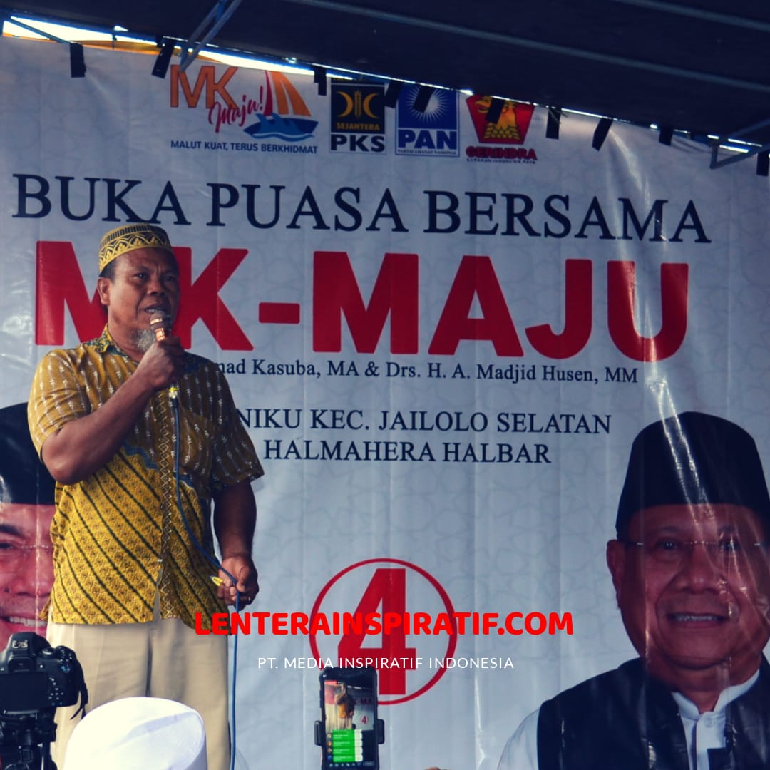 Masyarakat sudah terbiasa dengan janji – janji yang pada ujungnya tak terealisasi. Jadi, dalam memilih pemimpin itu harus yang berpengalaman, sudah terbukti, dan melayani masyarakat dengan baik. Dan hal itu, sudah tercermin dalam pasangan calon (Paslon) Muhammad Kasuba dan Abdul Madjid Husen (MK – Maju). Seperti yang diungkapkan oleh Hairudin Muhamat, mantan Kepala Desa Toniku, Kecamatan Jailolo Selatan, Kabupaten Halmahera Barat, pada Jumat (01/06/2018), saat orasi politik dalam kampanye MK – Maju.
