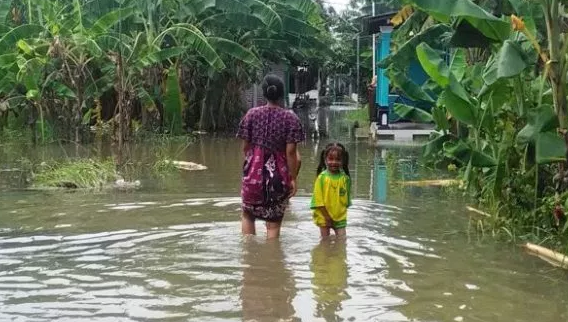 hujan deras sebabkan beberapa desa kecamatan porong sidoarjo di rendam banjir