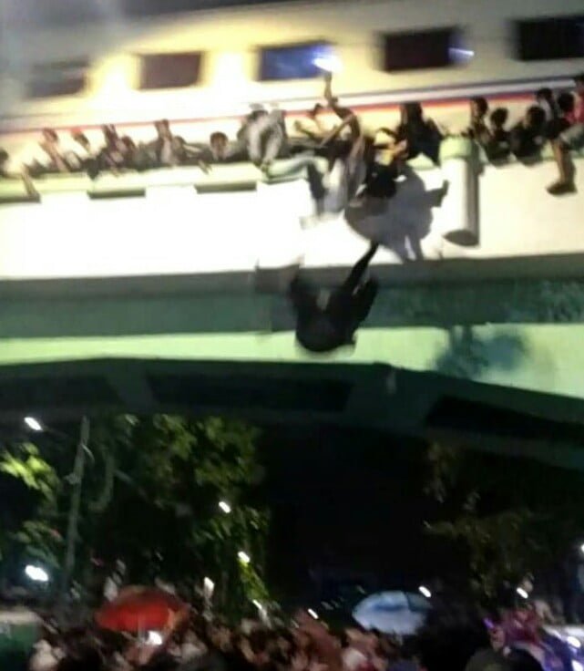 Seperti yang diberitakan sebelumnya, Drama Kolosal Surabaya Membara untuk memperingati Hari Pahlawan yang digelar di area Tugu Pahlawan, Kota Surabaya. Ribuan warga yang menyaksikan harus berdesak-desakan sampai mereka rela naik ke viaduk. Naas, di saat yang sama ada kereta api lewat sehingga belasan orang terjatuh dari atas viaduk. (kus)