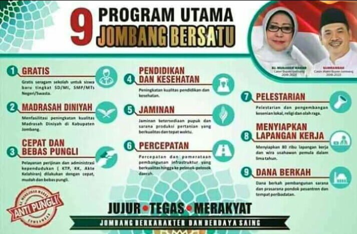 Totok (41), asal Desa Carangrejo, Kecamatan Kesamben, mengungkapkan, janji sembilan program utama pasangan Mundjidah Wahab-Sumrambah, masih banyak yang belum ditunaikan atau yang menyentuh dengan masyarakat langsung.