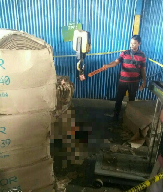 Mohamad Defit (23) karyawan Pabrik Kertas PT Pakerin, Desa Bangun, Pungging, Mojokerto. bagian produksi SP 35 harus menghembuskan nafas terakhirnya saat itu juga setelah tertimpa tumpukan kertas seberat 1,6 ton Minggu (21/01/2018) sekitar pukul 11:00 WIB