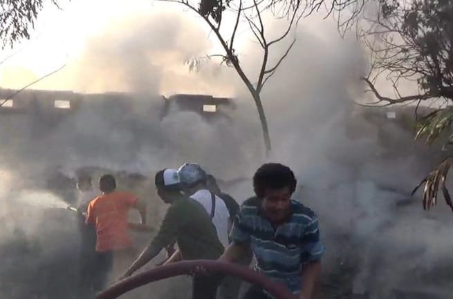 kebakaran pertama muncul bermula di ketahui warga berasal dari bagian belakang gudang rongsokan. Banyaknya barang yang mudah terbakar termasuk kertas membuat api cepat membesar. dalam kebakaran tersebut titik api sempat mengeluarkan Beberapa suara letupan hingga warga panik lantaran posisi gudang berdekatan dengan pemukiman warga.