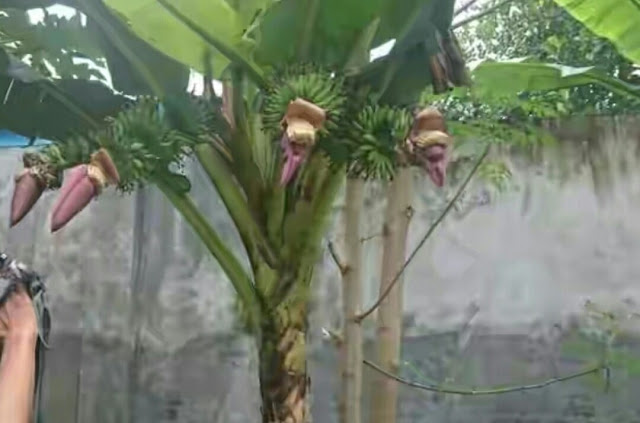 Hal yang langka terjadi dengan pohon pisang dengan empat tandan yang ada di Desa Bulurejo, Kecamatan Diwek Jombang Jawa Timur.