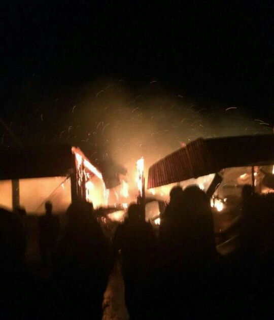 di perkirakan sebanyak 5 kios dan 2 dapur di kelurahan sarangan, kecamatan plaosan, Magetan Jawa Timur jum’at 19/01/2018 pukul 20.12 wib habis terbakar.