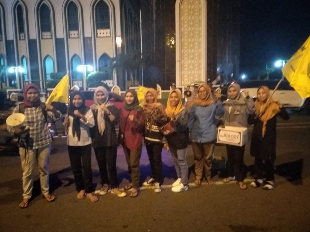 TERNATE – Korps Pergerakan Mahasiswa Islam Indonesia (PMII) Putri (Kopri) Cabang Kota Ternate menggelar aksi galang dana untuk korban bencana gempa yang terjadi di Halmahera Selatan beberapa waktu lalu. Aksi bakti sosial Kopri PMII Kota Ternate tersebut berlangsung di depan Masjid Al-Munawar Kecamatan Kota Ternate Tengah, Selasa (16/07/2019).