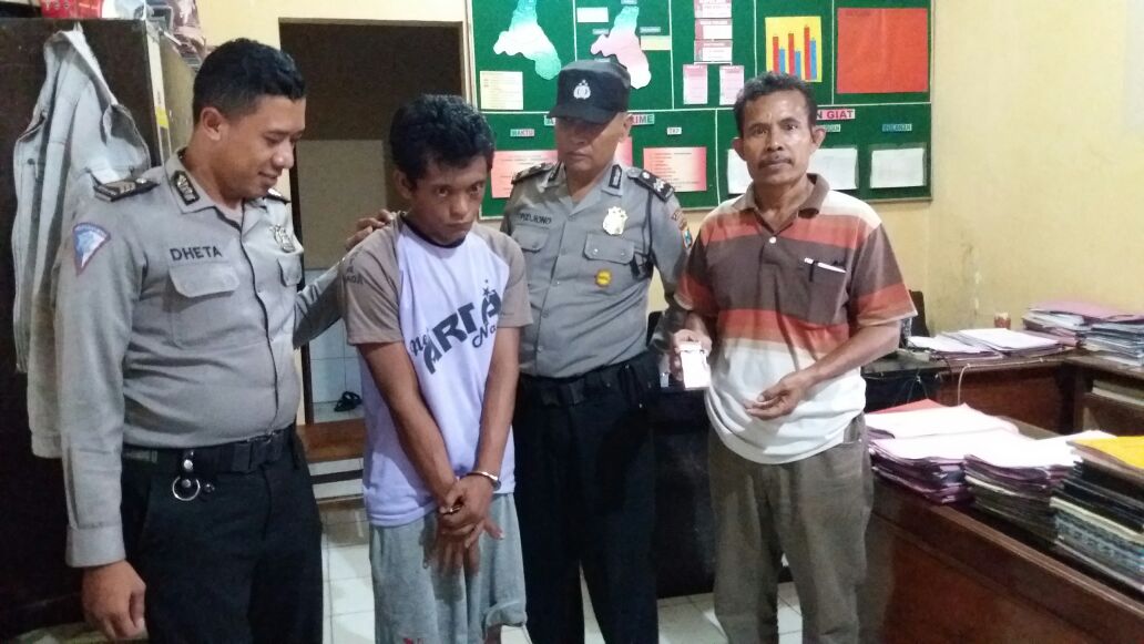 foto : pelaku dan barang bukti saat ditunjukkan petugas