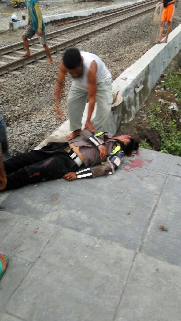 “berawal dari pengaturan lalulintas 4 personil BM dua di selatan palang pintu dan dua di utara palang pintu, kedua unit sama-sama melaksanakan tugas diluar palang pintu setelah selesai contra flow korban jalan kaki masuk mendekat rel KA saat itu pula KA lewat sehingga korban tidak memperhatikan dan akhirnya di santap kereta api jurusan jakarta ” jelas kanit lakalantas polres jombang Iptu sulaiman.