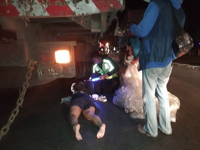 iptu sulaiman kanit laka satlantas polres jombang menjelaskan, Semula pengendara Kendaraan sepeda motor honda Beat Nopol.: W-6491-QM yang di kendarai korban berjalan dari arah selatan ke utara pada saat di perempatan belok kanan menyerempet median jalan mengarah kekiri tertabrak kendaraan Truck Gandeng Nopol H-1521-NG yang di kendarai SURIP (49) warga Dusun Pengkol Desa Ceweng Kecamatan Diwek Kabupaten Jombang yang berjalan dari arah selatan keutara belok kanan.,maka terjadilah kecelakaan.