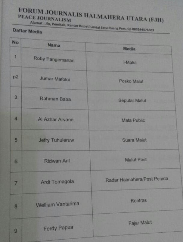 HALUT – Sejumlah oknum Wartawan yang tergabung dalam Forum Jurnalis Halmahera Utara (FJH) mencatut nama Ridwan Arif, Wartawan Malut Post untuk kepentingan pencairan dana kegiatan Uji Kompetensi Wartawan (UKW) Persatuan Wartawan Indonesia (PWI) Provinsi Maluku Utara (Malut) yang dianggarkan melalui Anggaran Pendapatan Belanja Daerah-Perubahan (APBD-P) Halmahera Utara (Halut) 2018 kemarin.