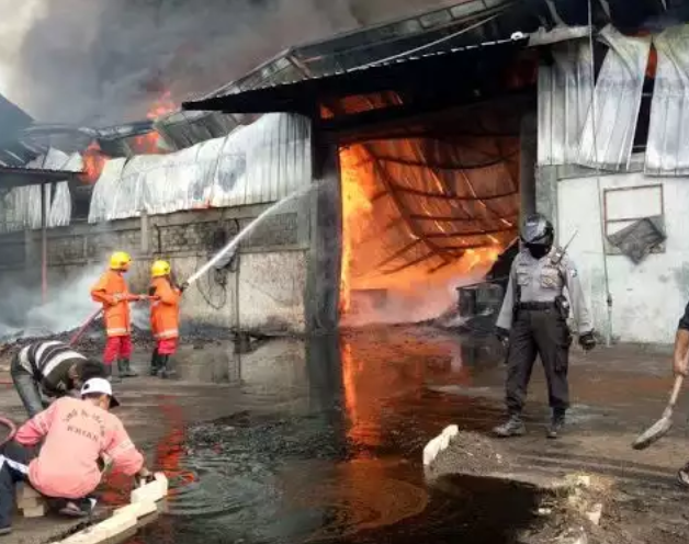 terlihat asap hitam membumbung tinggi dari atap bangunan bagian belakang pabrik, di perkirakan hanya dalam waktu kurang lebih 30 menit api sudah melahap habis gudang, kejadian berlangsung saat adanya pergantian shift karyawan, karena melihat adanya kebakaran sontak seluruh karyawan berhamburan keluar pabrik untuk menyelamatkan diri.