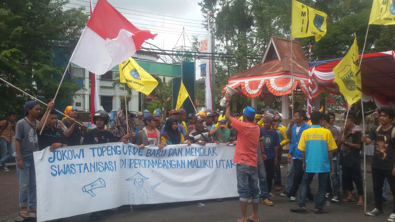 Musatir menambahkan, bahwa pemerintah Jokowi-Jk, telah menjalankan program yang direncanakan oleh penjajah yakni (Amerika, Inggris, Jepang Australia, dll), sehingga munculnya penguasaan tanah rakyat di sektor agraria, misalnya Obi (PT. Kawasi, PT MSP), disektor kelautan, kabupaten Pulau Morotai yakni (PT. MMC), Bacan (WIFT) yang membuang-buang anggaran daerah, serta sejumlah kebohongan di Maluku Utara, belum diselesaikan.