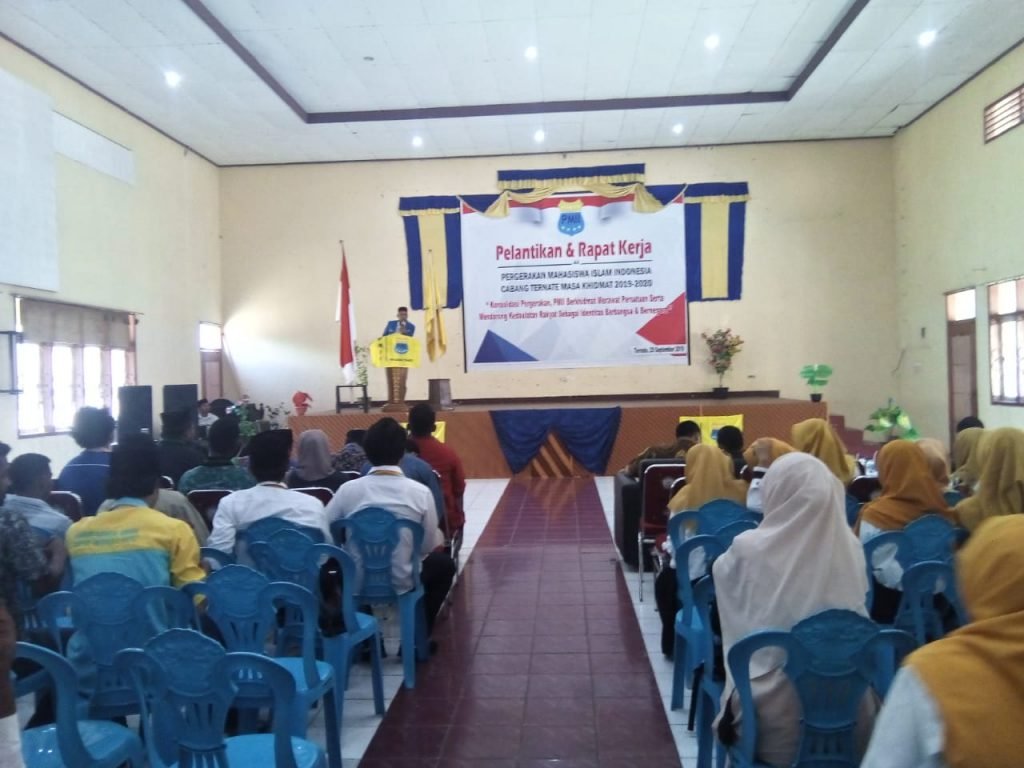 TERNATE – Pelantikan dan Rapat Kerja (Raker) Pengurus Cabang Pergerakan Mahasiswa Islam Indonesia (PC PMII) Ternate Masa Khidmat 2019-2020 dengan bertajuk “Konsolidasi Pergerakan, PMII Berkhidmat Merawat Persatuan Serta Mendorong Kedaulatan Rakyat Sebagai Identitas Berbangsa dan Bernegara”, Minggu (29/9)