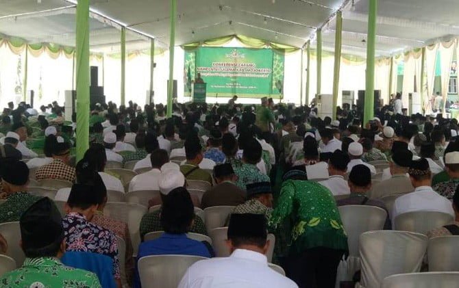 MOJOKERTO – Pengurus Cabang (PC) Nadhatul Ulama (NU) Kabupaten Mojokerto menggelar Konferensi Cabang (Konfercab) 2018, Sabtu (06/10/2018). Konfercab dalam rangka memilih Rais dan Ketua Masa Khidmah 2018-2023 ini digelar di Jl. R.A Basuni, Kepindan, Japan, Sooko, Mojokerto, Jawa Timur. Acara tersebut dihadiri sekitar 2.000 peserta, yakni peserta aktif maupun non aktif. Dari delegasi Pengurus Majelis Wakil Cabang (MWC) dan Ranting NU se-Kabupaten Mojokerto. Turut hadir pula, Ketua Tanfidziyah Pengurus Wilayah (PW) NU Jawa Timur (Jatim) KH Marzuki Mustamar, Para Kiai dan Pengasuh Pesantren. Konfercab tersebut, mengambil tema ‘Meneguhkan NU sebagai Organisasi Mandiri dan bermartabat’.