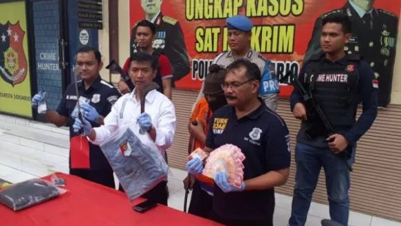 ” Saat hendak dilakukan penangkapan, tersangka berupaya untuk melawan petugas. sehingga petugas terpaksa menghadiahi timah panas di bagian kaki kanan tersangka. dan saat ini Tersangka langsung kami amankan ke Mapolresta Sidoarjo guna dilakukan pemeriksaan,” jelas. Kapolresta Sidoarjo Kombes Pol Himawan Bayu Aji