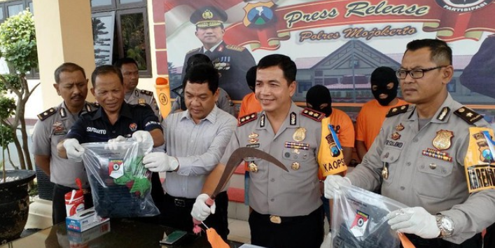 Foto : kapolres mojokerto menunjukan barang bukti dalam pers rilis di mapolres mojokerto.