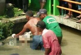 Penemuan Mayat dengan celana warna putih dan baju warna hitam berjenis kelamin laki-laki di bawah jembatan SDN Sawocangkring yang menyangkut di sungai bersama sampah sampah, menggegerkan warga sekitar Desa Sawocangkring, Kecamatan Wonoayu, Sidoarjo, Rabu (28/2/2018).