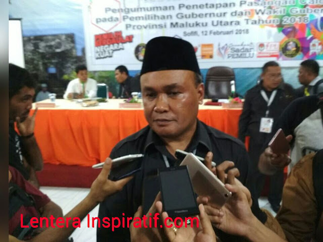 Hal ini disampaikan ketua KPU Malut Syahrani Somadayo kepada wartawan Lentera Inspiratif.com. Senin (12/2/2018) usai penetapan Calon pasangan Gubernur dan Wakil Gubernur Malut.