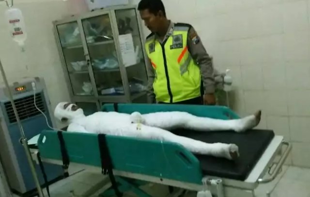 Toyib, Warga Dusun Sumur Watu, Desa Gunungsari, Kecamatan Beji kabupaten pasuruan jawa timur harus mengalami luka bakar di sekujur tubuhnya