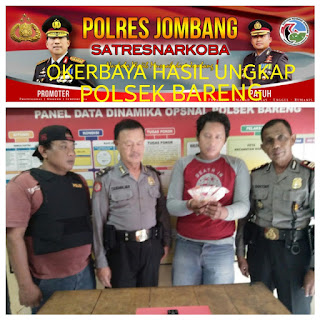 Maraknya peredaran narkoba yang berada di wilayah hukum Polres Jombang, Jawa Timur membuat petugas dari jajaran Mapolres setempat harus lebih ekstra dalam menumpas peredarannya. Buktinya, kali ini petugas dari Mapolsek Bareng berhasil mengungkap dan menangkap pelaku yang diduga kuat sebagai pemakai dan pengedar narkoba. Pelaku tersebut adalah Asmadi alias Dimbok (41) warga Dusun Banjarsari, Desa/Kecamatan Bareng, Jombang. Penangkapan terhadap pelaku dilakukan petugas saat berada di wilayah Desanya, setelah pelaku melakukan transaksi dengan pelanggannya, pada Minggu (18/03/2018) sekitar pukul 23.30 WIB.