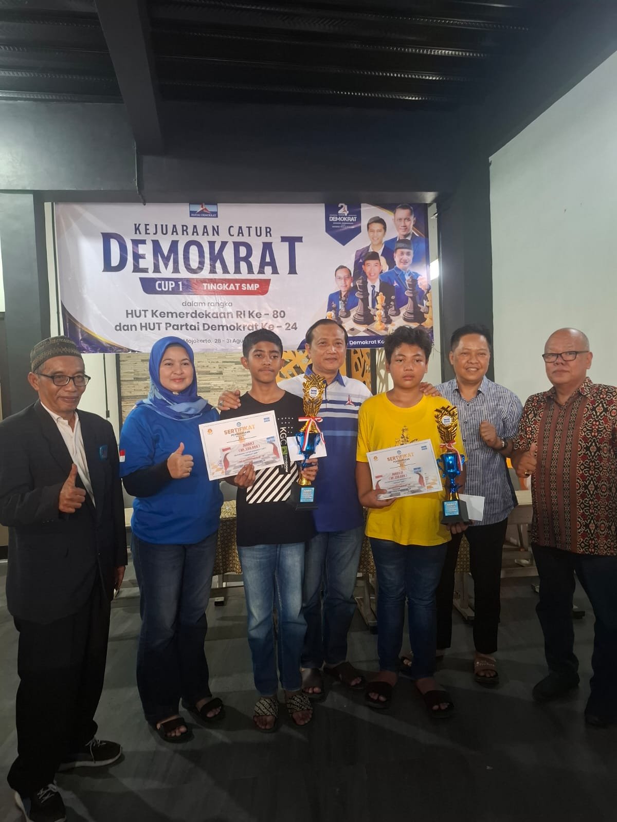 Demokrat Mojokerto | lenterainspiratif.id – Memperingati HUT Partai Demokrat ke 24 sekaligus HUT RI ke 80 DPC Dewan Pimpinan Cabang (DPC) Partai Demokrat Kota Mojokerto menggelar Kejuaraan catur Demokrat Cup 1 tingkat Sekolah Menengah Pertama (SMP).