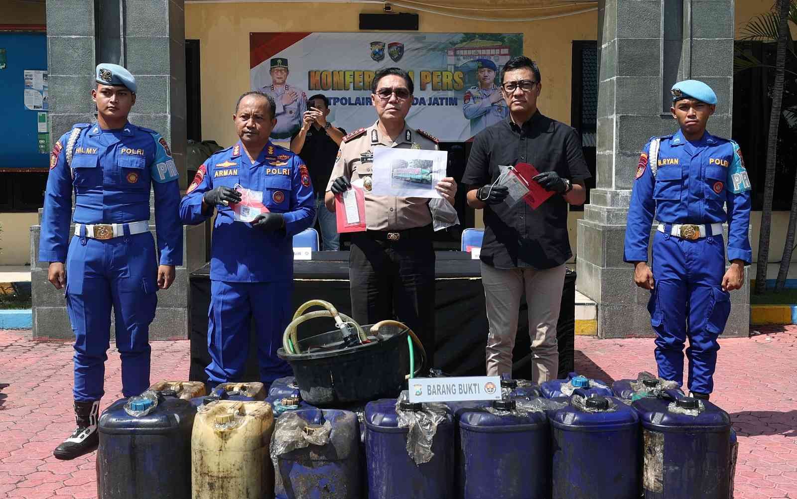 Direktur Polairud Polda Jatim, Kombes Pol Arman Asmara Syarifuddin, menjelaskan pengungkapan kasus bermula dari laporan masyarakat terkait dugaan pengiriman solar subsidi tanpa dokumen resmi dari Blora menuju Pangkalan Bun, Kalimantan Tengah, pada Senin (20/4/2026).