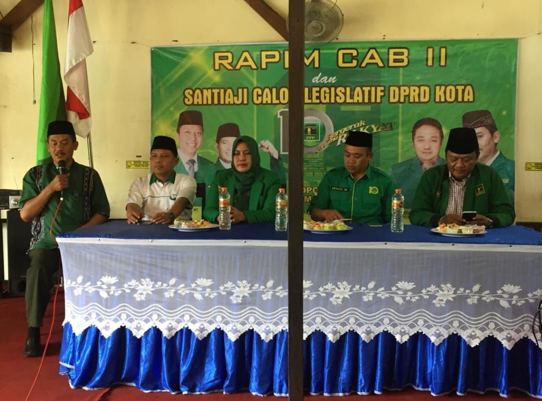 Mojokerto – Rapimcab ke 2 dan satiaji DPC partai persatuan pembangunan (PPP) kota mojokerto, yang di gelar di dapur m’riah senin 10/12/2018 pukul 10.00 wib, yang di ikuti oleh puluhan kader PPP serta pengurus DPC, PAC, serta ranting dari 3 kecamatan dibuka secara langsung oleh Drs. Riha Mustofa selaku ketum PPP kota mojokerto.