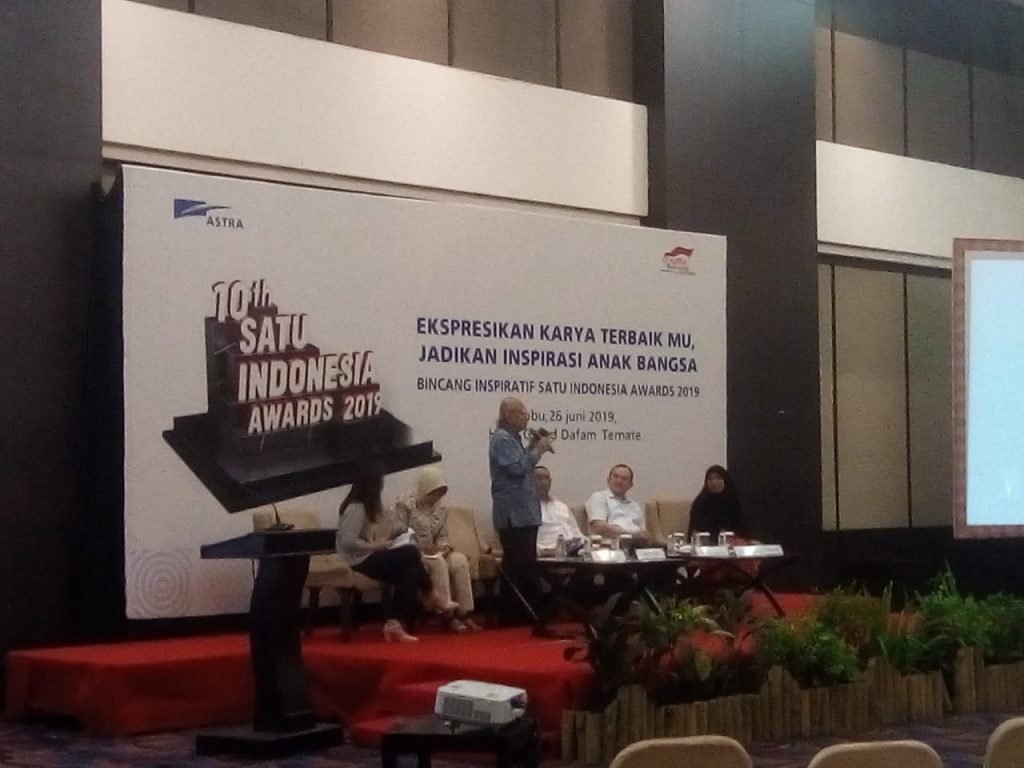 TERNATE – PT Astra International Tbk kembali mengadakan sebuah bincang inspiratif dalam rangka menyosialisasikan program Semangat Astra Terpadu Untuk Indonesia (SATU Indonesia) Awards 2019 di Hotel Grand Dafam Kota Ternate, Rabu (26/06/2019).