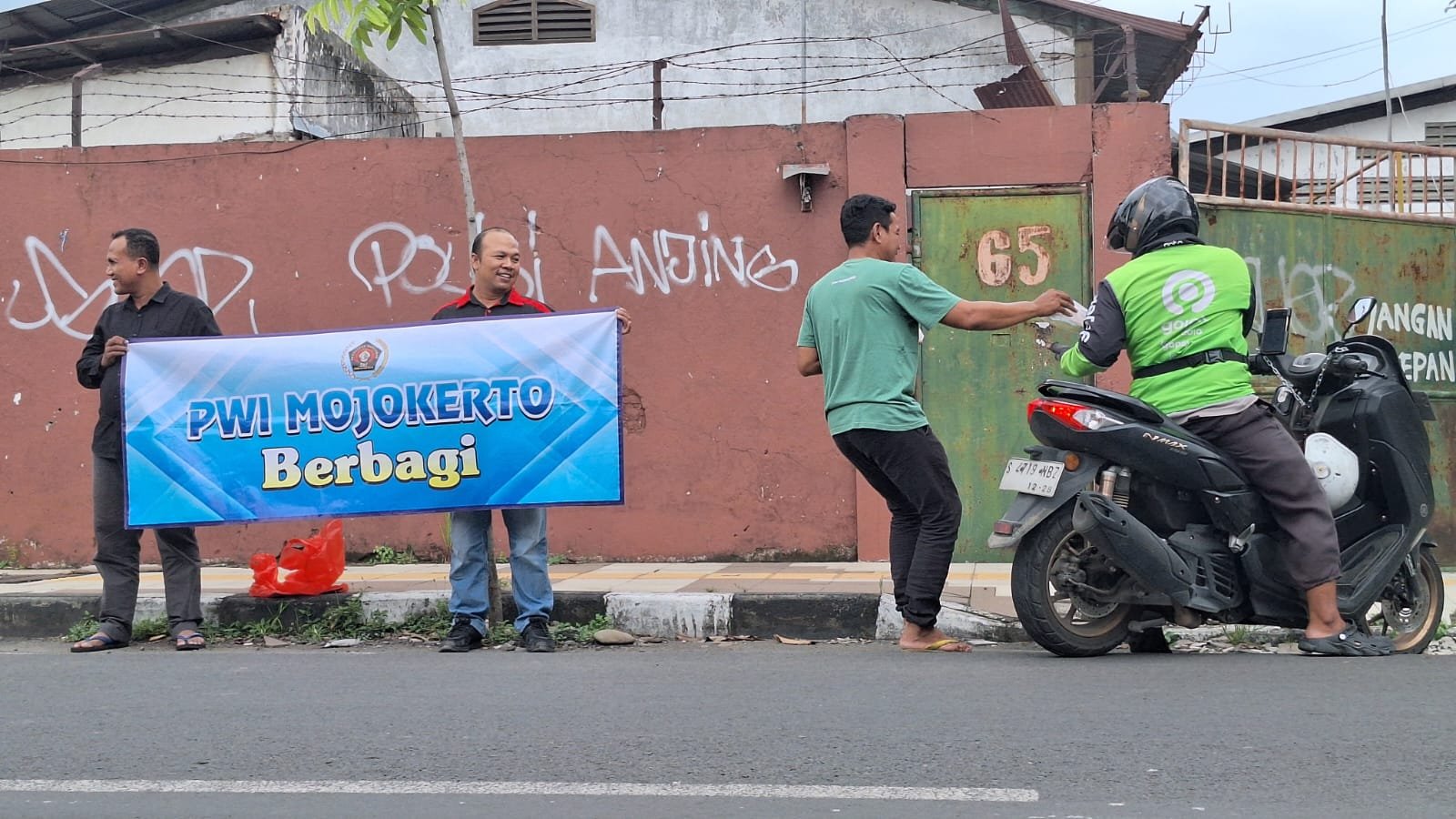 Respons positif mengalir dari masyarakat. Banyak warga dan pengendara yang menghentikan motor sejenak, menerima paket makanan sambil berbincang ringan dengan para anggota PWI Mojokerto. Pada momen inilah batas antara pewarta dan publik benar-benar mencair.