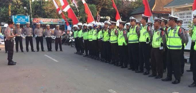 JOMBANG-lenterainspiratif.com Ratusan personel Polres Jombang diterjunkan saat peringatan hari santri Nasional di Kabupaten Jombang. Personil tersebut disiagakan guna mengamankan acara kirab dan apel santri di alun – alun Jombang, Senin (22/10/2018).