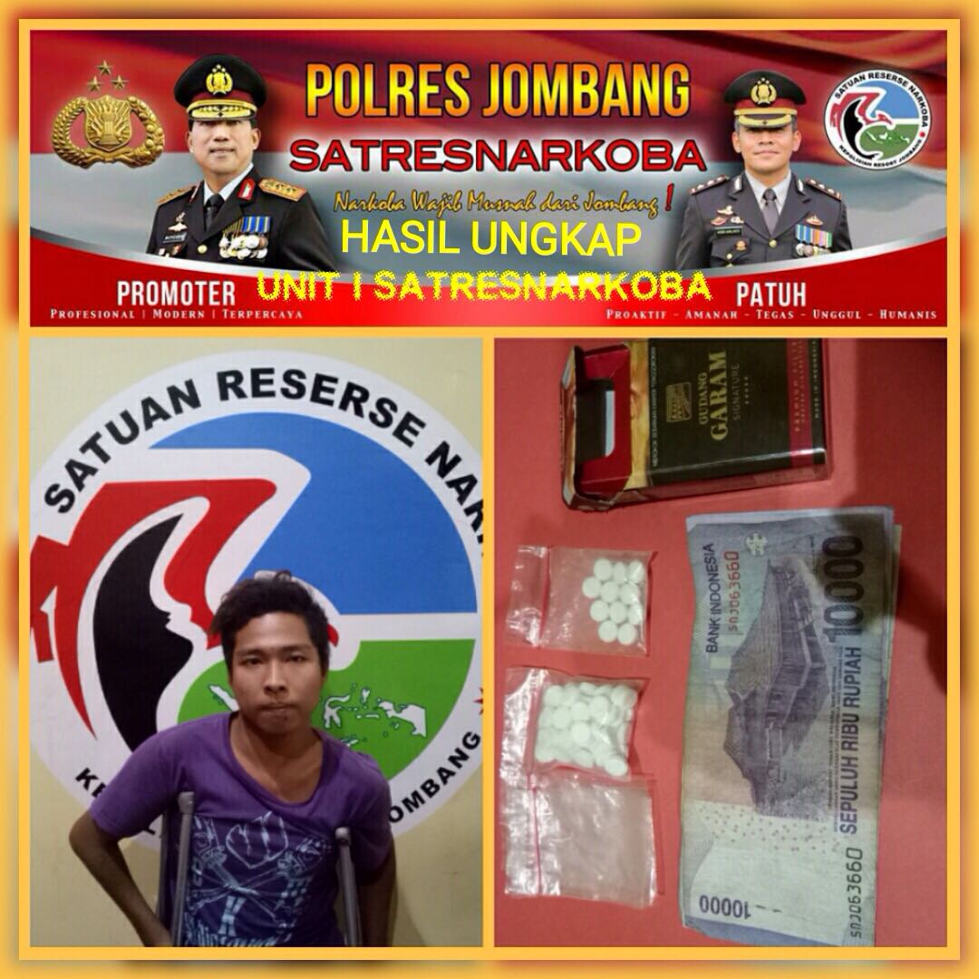 "Pelaku kita tangkap saat sedang istirahat dirumahnya dengan kondisi kaki yang luka. Tetapi pelaku masih menerima pesanan pil double L dari pelanggannya. "ucap AKP Hasran, Kasatresnarkoba Polres Jombang, Jawa Timur, Senin (11/09/2017)