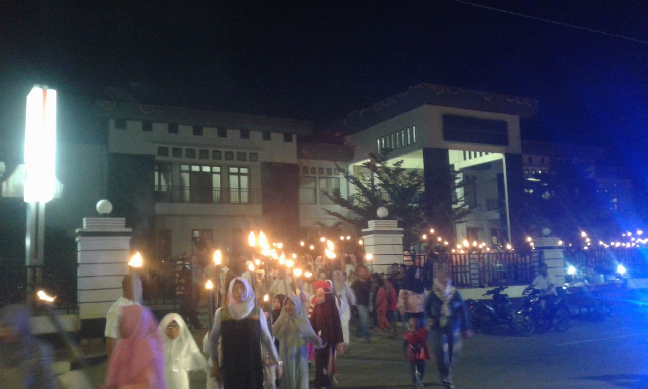 dari rombongan obor di dominasi anak anak siswa pelajar dan ASN seputar lingkup SKPD