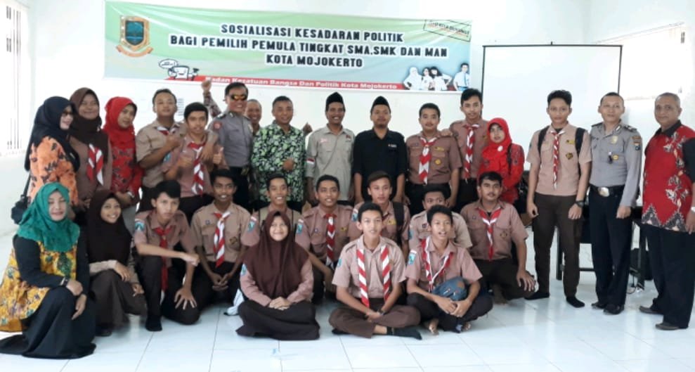 MOJOKERTO – Badan Kesatuan Bangsa dan Politik (Bakesbangpol) Mojokerto mengadakan kegiatan sosialisasi. Kali ini, sosialisasi di gelar untuk tingkat SMA dan SMK. Kegiatan yang bertujuan untuk memberikan arahan tentang bagaimana cara yang tepat untuk memberikan hak suara yang baik untuk pemilu yang akan diselenggarakan pada tanggal 17 April 2019 mendatang, berlangsung di SMKN 2 Mojokerto. Dengan mengangkat tema ‘Sosialisasi Kesadaran Politik Bagi Pemilih Pemula Tingkat SMA, SMK dan MAN Di Kota Mojokerto’, Sabtu (19/1/2019).